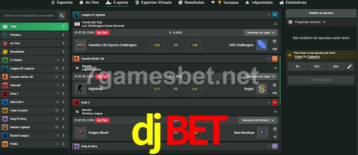O djbet oferece uma grande seleção de opções de apostas em e-sports com probabilidades competitivas